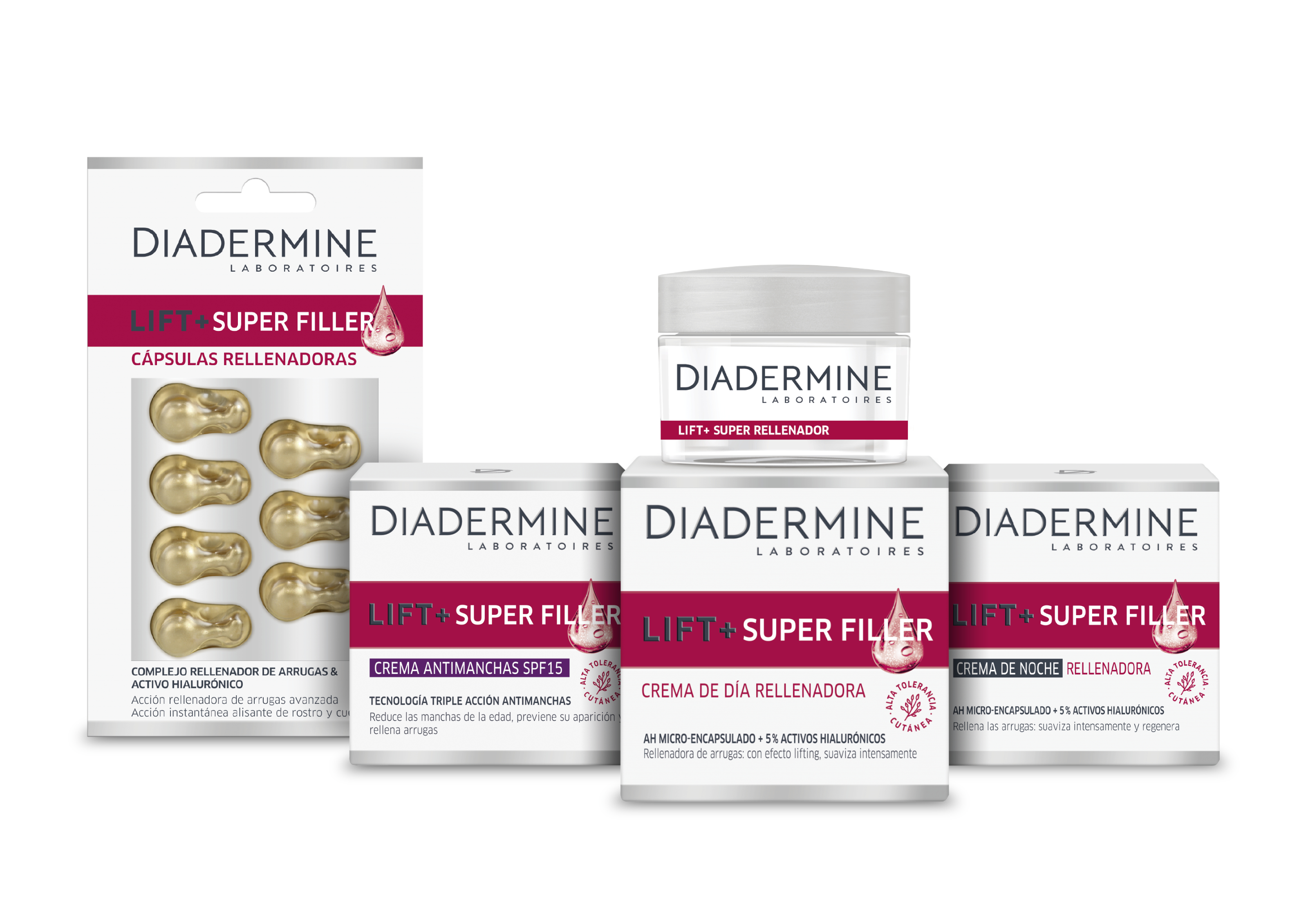 Por otro lado, las mujeres de más de 40 años, a la hora de comprar, se centran en el beneficio principal del producto y en sus ingredientes, como pueden ser el ácido hialurónico o el retinol. Para estas necesidades, Diadermine ofrece la gama Lift + Super Filler, que contiene activos hialurónicos microencapsulados que penetran en la piel y rellenan las arrugas desde el interior, aportando volumen y dejando la piel tersa y lisa.