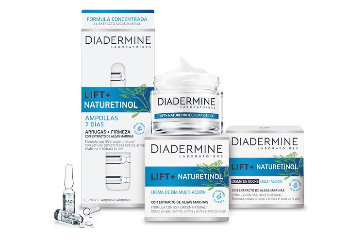 Asimismo, las consumidoras de más de 40 años consideran relevante que los productos contengan un elevado porcentaje de ingredientes de origen natural y/o ecológicos. Para estas necesidades, Diadermine ofrece Lift+ Naturetinol, su alternativa natural al retinol, con un 95% ingredientes de origen natural2, dando resultados tan eficaces como el retinol sin sus posibles efectos negativos: reduce arrugas, reafirma, ilumina y unifica el tono de la piel.