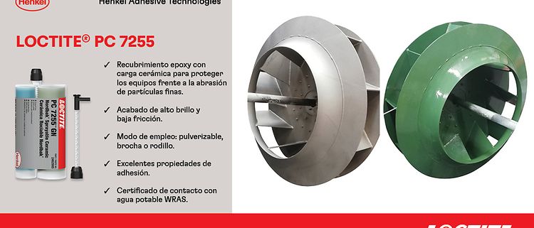 Uno de los ejemplos de aplicación de altas prestaciones se realiza con el recubrimiento epoxy pulverizable LOCTITE® PC 7255, que cuenta con una alta carga cerámica para proteger las superficies metálicas contra agentes abrasivos, corrosivos, abrasión, cavitación, etc. Cuenta con un relleno cerámico para proteger los equipos frente a la abrasión de partículas finas y deja un acabado de alto brillo y baja fricción. La aplicación es ultrasuave y genera excelentes resultados gracias a sus altas propiedades de adhesión manteniendo una unión sólida. Además, dispone de un Certificado de contacto con agua potable WRAS.