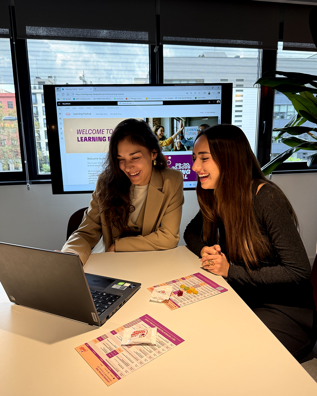Empleadas de Henkel Ibérica conectadas al Learning Festival para seguir las sesiones virtuales.